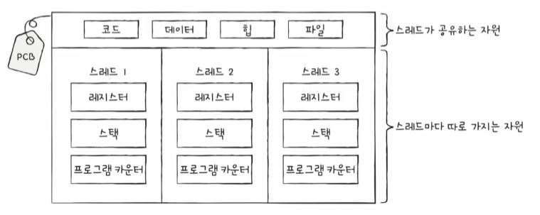 하나의 프로세스는 하나 이상의 스레드를 가질 수 있다