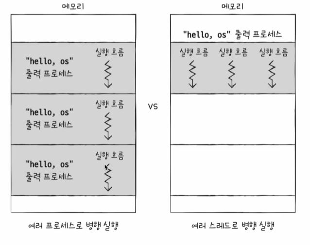 프로세스를 이루는 여러 명령어 동시 실행 가능