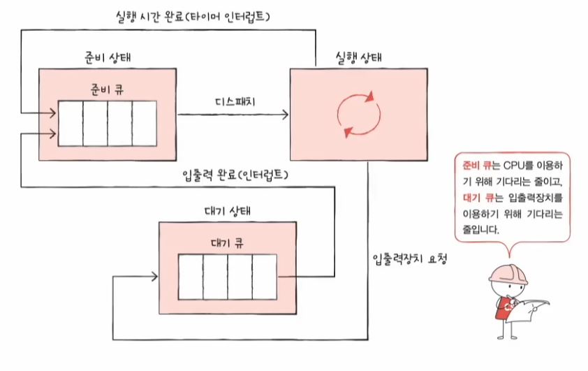 CPU를 원하는 프로세스들이 차례로 돌아가는 것이 아니라