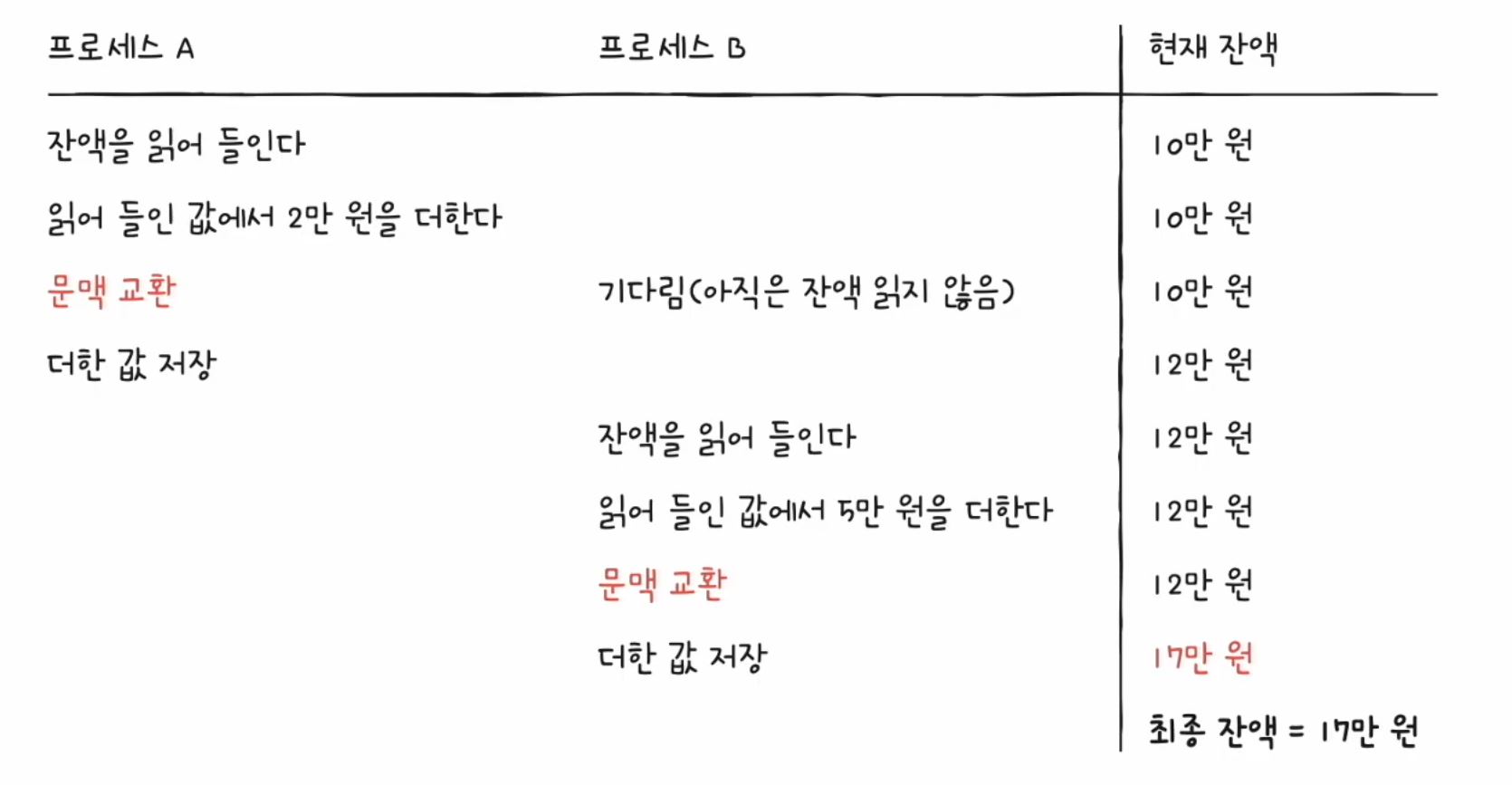 이처럼 임계 구역에 동시에 접근하면 자원의 일관성이 깨지고 상태가 발생하고