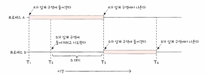 임계 구역에 진입하고자 하면 진입한 프로세스 이외에는 대기해야 한다