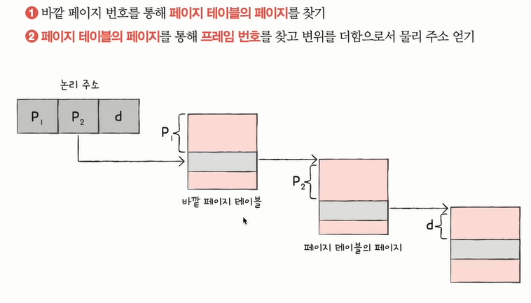 페이지 테이블을 페이징하여 여러 단계의 페이지를 두는 방식