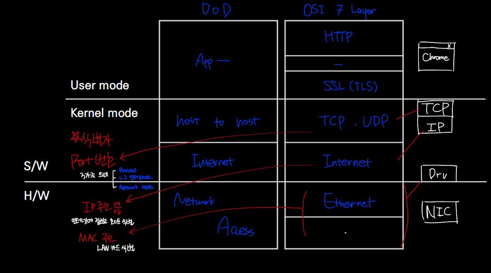 우측은 OSI 7 Layer를 기준으로 구분하였을 때, 중요 개념 혹은 Protocol을 작성해 둔 것이다