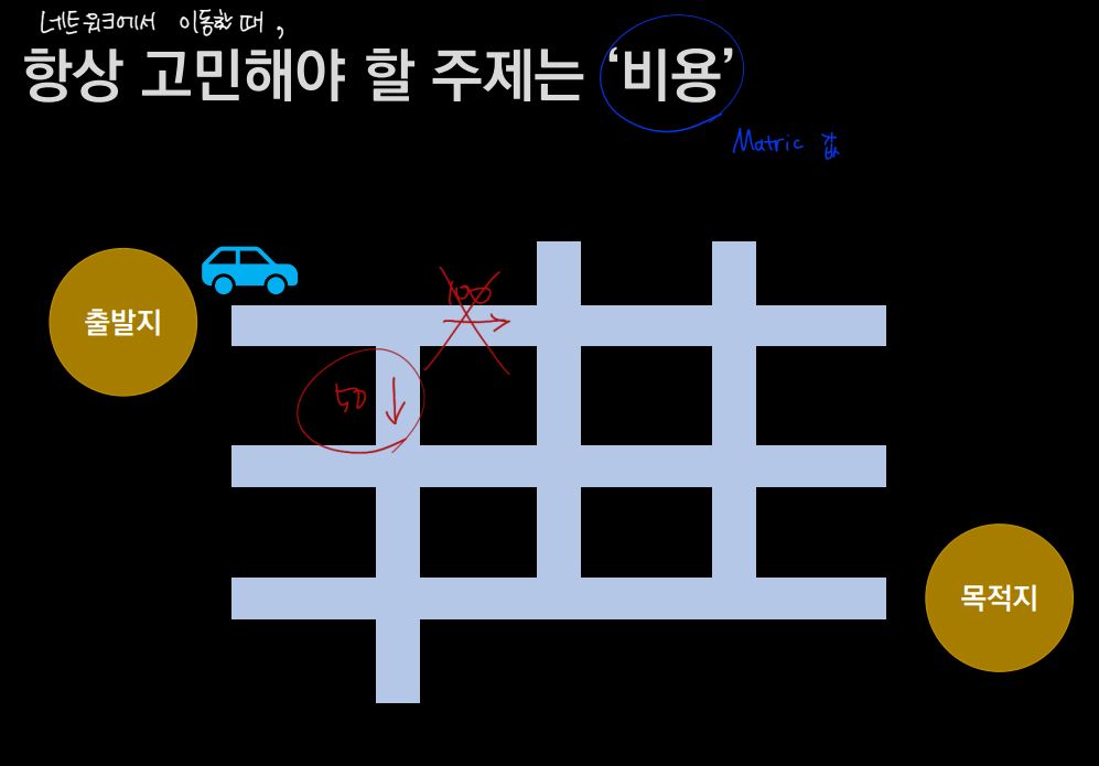 네트워크 이동시 발생하는 비용을 Matric이라고 부른다