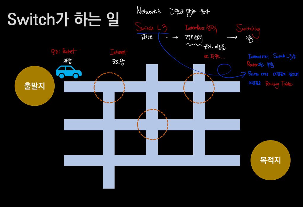 L3 Switch의 경우에는 Router라고 불리며 Routing Table을 바탕으로 Interface를 선택하게 된다