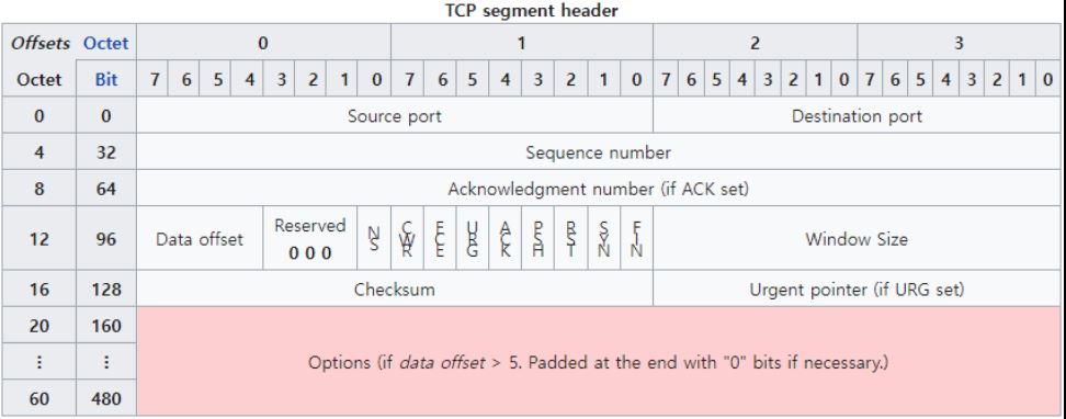 TCP 헤더 형식에 Flag들을(ex. NS, SWR, ECE,...) 포함해