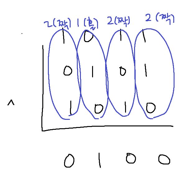 비트별로 1의 개수가 홀수개면 그 결과는 1, 짝수개면 0