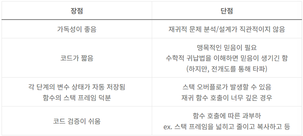 재귀함수가 가독성도 좋고, 재사용성도 뛰어나지만