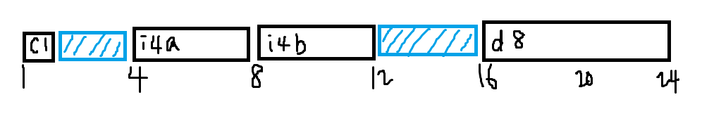 위에서 보았던 구조체 A, B를 명시적 패딩을 해준다면 아래와 같다