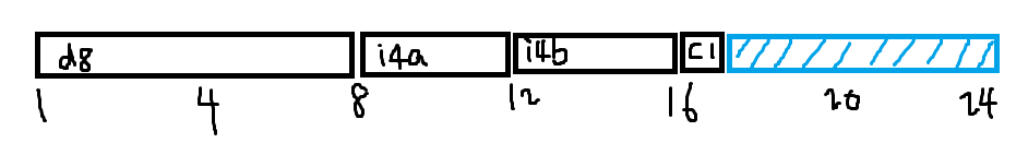 4바이트 i4a는 4의 배수 자리에만 들어가야 해서 2, 3 바이트 위치가 아닌 4바이트에 위치했다