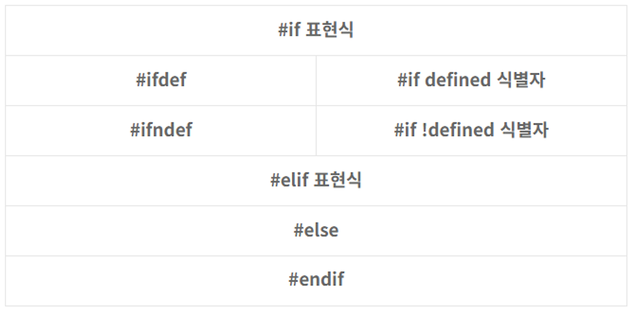 조건에 따라 특정 부분의 소스코드를 컴파일에 포함 혹은 배제시키는 문법이다