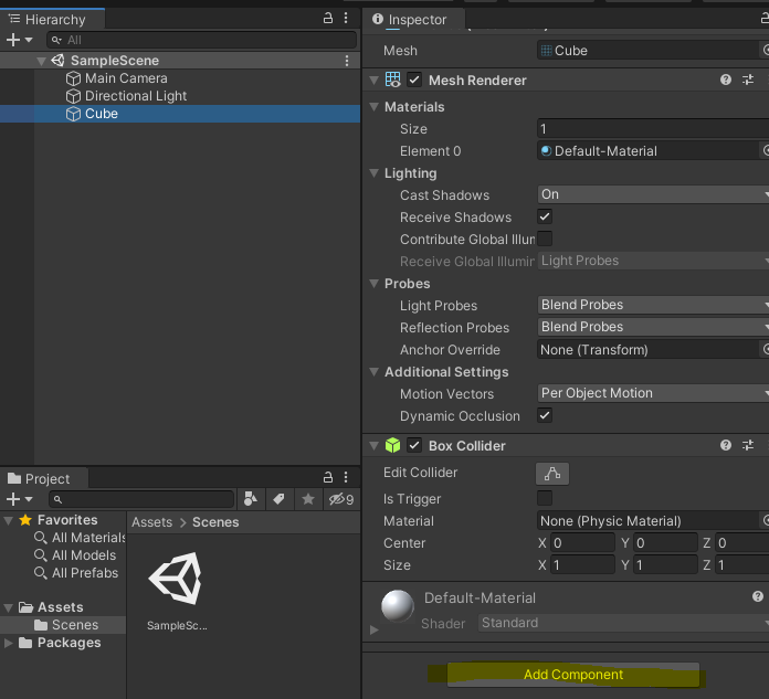 유니티 Component 장착 방법: AddComponent