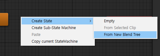 Create State > From New Blend Tree를 통해 Blend Node 생성 가능